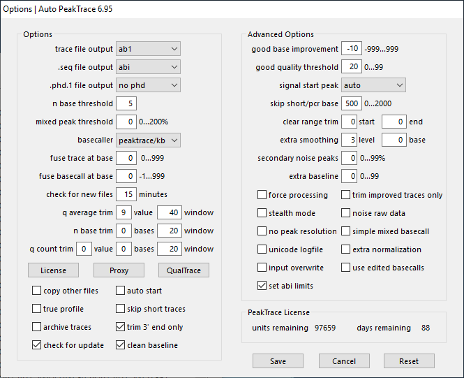 - You may need to reactivate your PeakTrace license online. If you need to do this you will be prompted to enter your PeakTrace Serial Number. The PeakTrace Serial Number is a 20 character long value broken into 5 blocks of 4 characters (i.e. XXXX-XXXX-XXXX-XXXX-XXXX). It is not the same as the PeakTrace License Code which is accessed from the Options window. This will have been supplied by Nucleics (or your local supplier) in the past. You should not need to do this step for versions 6.96 and higher.